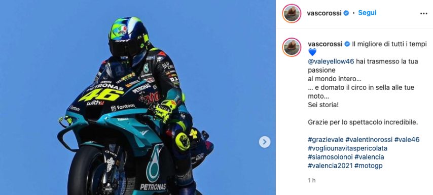 Valentino Rossi lascia la MotoGp: l'omaggio di colleghi e altri vip