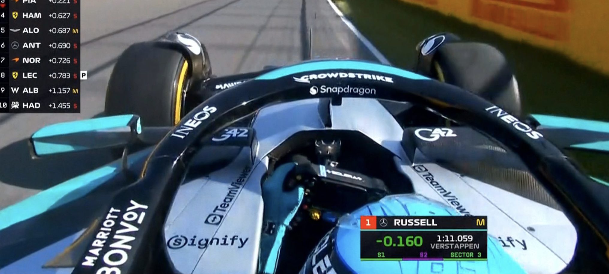 George Russell in pole al Gp Canada, beffa Verstappen e Piastri