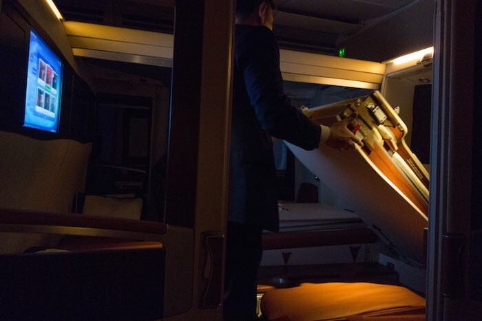 La Singapore Airlines va ben oltre la business class. Più in alto della prima classe, infatti, esiste la suite, che porta il facoltoso viaggiatore in una vera e propria stanza fornita di tutti i confort: cibo raffinata, servizio in camera, televisione al plasma, drink, bagno privato e, sopratutto, un comodo letto. E' possibile prenotare il servizio on line sul sito ufficiale della compagnia. Nel corso della fase di booking vi verrà chiesto il vostro titolo. Se la gente comune sceglie tra signore, signora, dottore e dottoressa, qui troverete anche re, regina, sultano, principe, deputato e tanti altri titoli che non riguardano la maggior parte di noi.