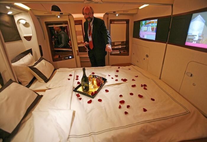 La Singapore Airlines va ben oltre la business class. Più in alto della prima classe, infatti, esiste la suite, che porta il facoltoso viaggiatore in una vera e propria stanza fornita di tutti i confort: cibo raffinata, servizio in camera, televisione al plasma, drink, bagno privato e, sopratutto, un comodo letto. E' possibile prenotare il servizio on line sul sito ufficiale della compagnia. Nel corso della fase di booking vi verrà chiesto il vostro titolo. Se la gente comune sceglie tra signore, signora, dottore e dottoressa, qui troverete anche re, regina, sultano, principe, deputato e tanti altri titoli che non riguardano la maggior parte di noi.