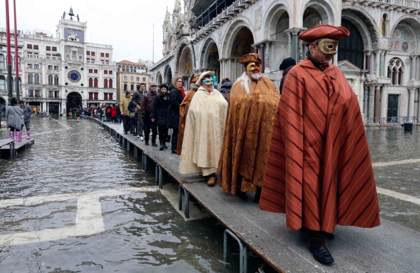 Iniziato il 31 gennaio, il Carnevale di Venezia si chiuderà il 17 febbraio, giorno del Martedì Grasso. Il cattivo tempo ha caratterizzato l'apertura della festa e portato parte della Laguna sotto il livello del mare. Mentre Piazza San Marco sottostava a qualche centimetro di acqua, il Carnevale cominciava con la Nordic Walking e, il giorno dopo, con la regata inaugurale. La festa va avanti, comunque e sempre. Le maschere non mancano e, se è vero che l'acqua alta dà noia, nel capoluogo veneto può essere assimilata, per un giorno almeno, come ornamento.