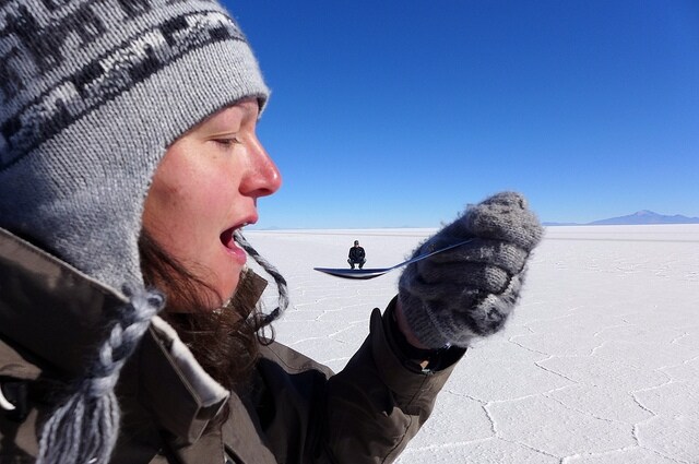 Un luogo che riflette ogni ogni cosa che si trova su di lui e dove non esiste prospettiva. Il Salar De Uyuni, il deserto di sale più grande del mondo che regala degli spettacoli incredibili e numerosi effetti ottici.