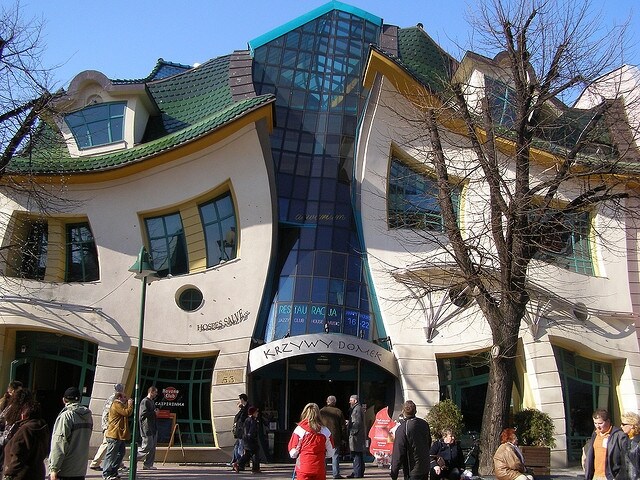 La Krzywy Domek è uno degli edifici più strani d'Europa. Questa casa dalla facciata contorta si trova a Sopot, in Polonia. Facciata, porte e finestre sono caratterizzate da linee storte e irregolari. La bizzarra struttura ospita il centro commerciale Rezydent, ricco di luoghi di intrattenimento per giovani.