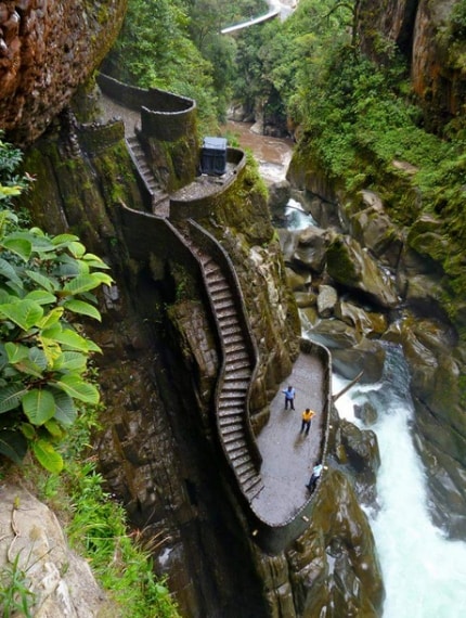 Uno dei posti più spettacolari al mondo: siamo in Ecuador e questa lunga scalinata fa da contorno alla "Pailon del Diablo" (Calderone del Diavolo", spettacolare cascata che si trova sul fiume Pastaza. Dall'alto la veduta è davvero spettacolare e allo stesso tempo mette temibile soprattutto dal ponte sospeso dove i turisti possono provare l'ebbrezza del brivido.