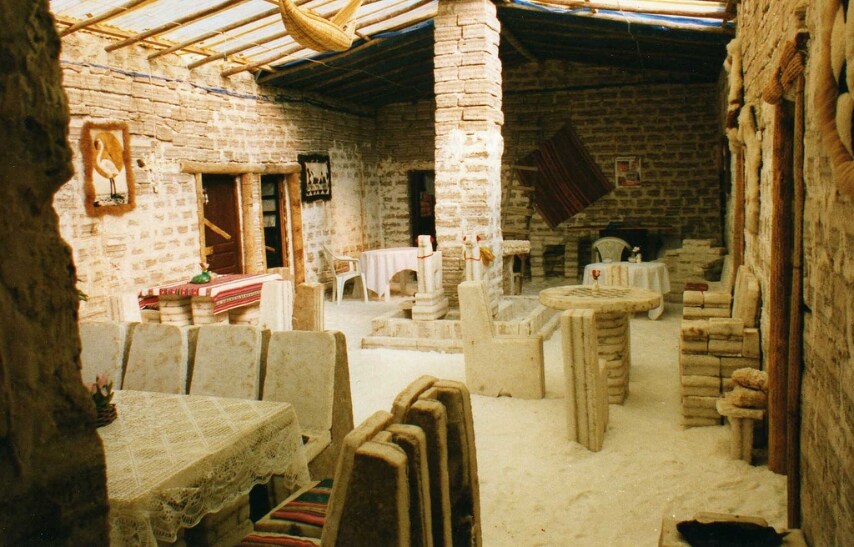 Nella sconfinata distesa delle Ande Boliviane si trova una struttura unica nel suo genere: il Palacio de Sal. Si tratta del primo hotel al mondo interamente costruito con blocchi di sale. Ogni elemento usato per l'arredo interno ed esterno, dalle sedie ai tavoli, dai campi da golf alla piscina, è stato realizzato utilizzando il sale presente nell'area.
