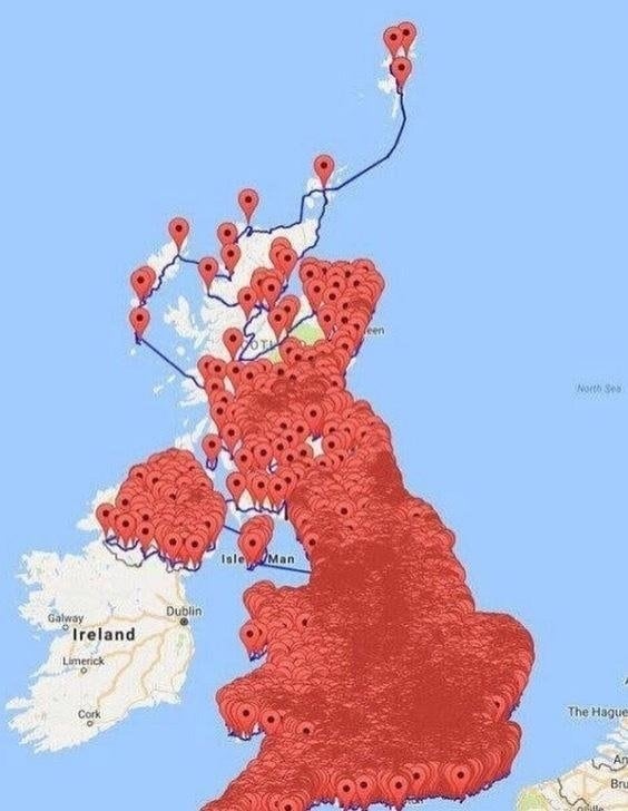 Un ragazzo ha compiuto un'impresa ardua e, lanciando una sfida a se stesso, ha deciso di realizzare una mappa completa che tenga nota di tutti, ma tutti i pub sparsi nel Regno Unito: un marcatore per ciascun locale. Il risultato, è una vera e propria invasione!