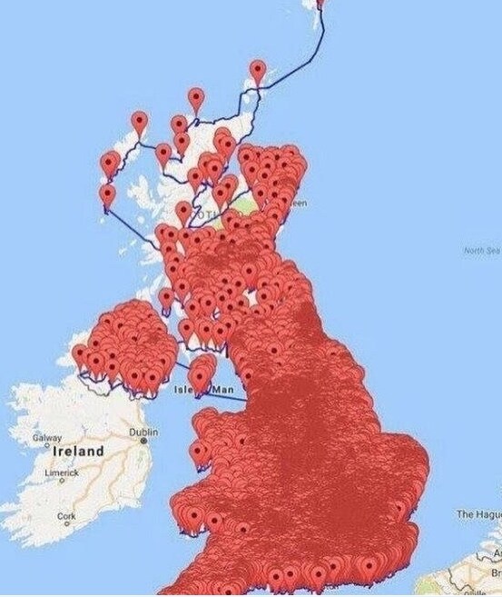 Un ragazzo ha compiuto un'impresa ardua e, lanciando una sfida a se stesso, ha deciso di realizzare una mappa completa che tenga nota di tutti, ma tutti i pub sparsi nel Regno Unito: un marcatore per ciascun locale. Il risultato, è una vera e propria invasione!