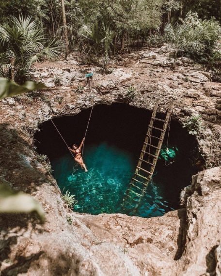 Il Cenote Calavera è situato a Tulum, in Messico. Il nome della destinazione significa "grotta del cranio", perché la sua formazione rocciosa ricorda la forma di un teschio. Per entrare nel Cenote è necessario saltare da un'altezza di 3 metri per raggiungere la superficie dell'acqua. L'area della grotta è formata da grandi sale con una colonna di sedimenti e rocce al centro. Durante l'immersione, è possibile camminare giù per la collina, passando attraverso diverse profondità lungo le pareti del cenote.