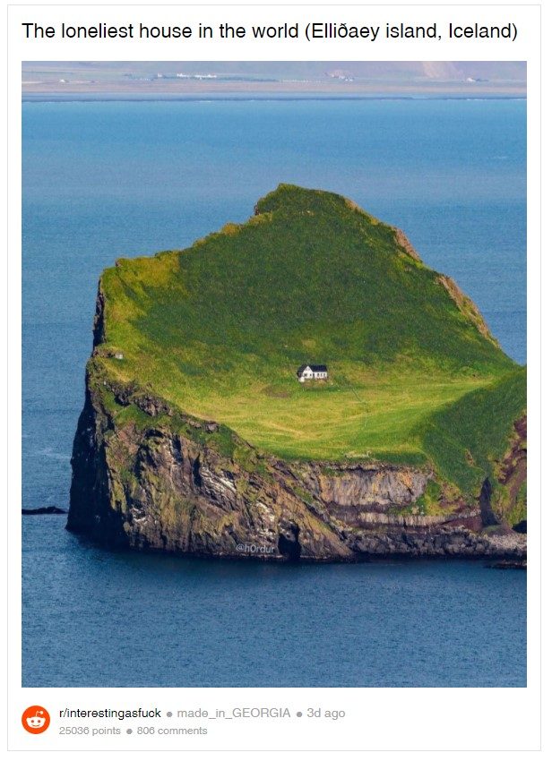 È stata ribattezzata come la "casa più solitaria del mondo", situata su una remota isola islandese, ed è disabitata da più di 100 anni.