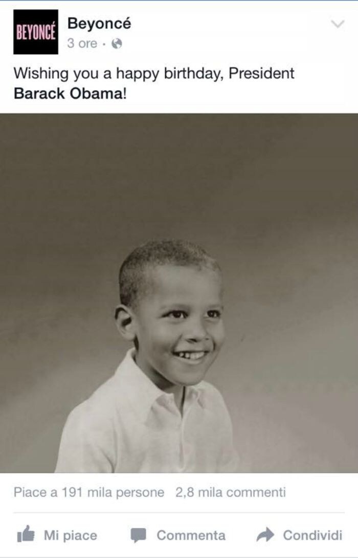 Gli auguri di Beyoncé a Barack Obama per il suo 54esimo compleanno