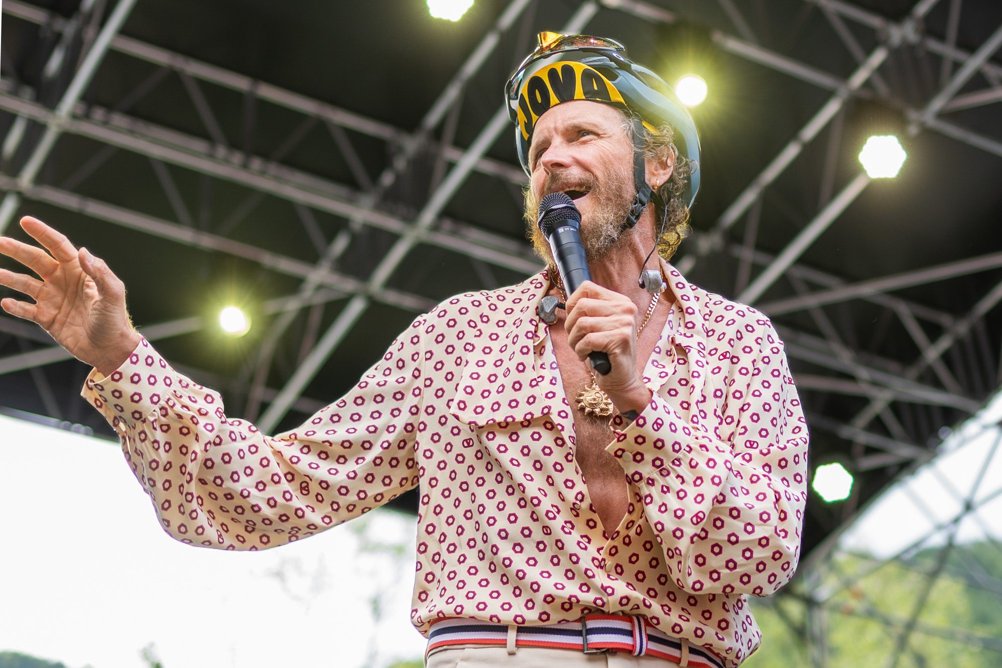 Le foto di Jovanotti al No Borders Music Festival dove è arrivato percorrendo 770 chilometri in bicicletta.