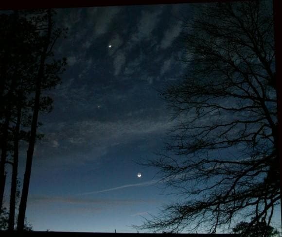 Per qualche giorno, con la Luna, sorgevano molto vicini anche due pianeti del Sistema Solare: Venere e Giove. Con le prime luci dell'alba del 18 agosto i due pianeti sono sorti, con il nostro satellite naturale, vicinissimi e luminosi. La distanza tra loro, vista dalla Terra, è stata di soli 12°. Una congiunzione eccezionale che si è verificata anche altre volte e che ha portato alcuni osservatori ad equivocare quelle luci con le forme - molto cinematografiche - attribuite spesso alle navicelle degli Ufo.