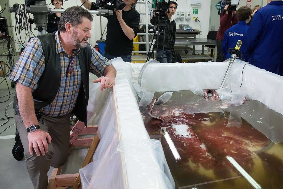 Un enorme esemplare di calamaro gigante è stato pescato questa estate in Antartide. Il cefalopode è stato ibernato e poi scongelato dagli scienziati in un laboratorio di Wellington, in Nuova Zelanda, per esaminarlo nei dettagli.