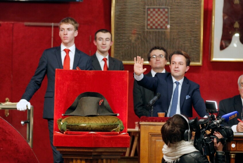 Fontainebleau, Parigi. Le immagini dell'asta in cui è stato venduto il famoso cappello bicorno di Napoleone. L'asta si è tenuta Domenica 16 Novembre e il celebre cappello di Napoleone Bonaparte è stato venduto per 1,5 milioni di euro (1,93 milioni dollari).