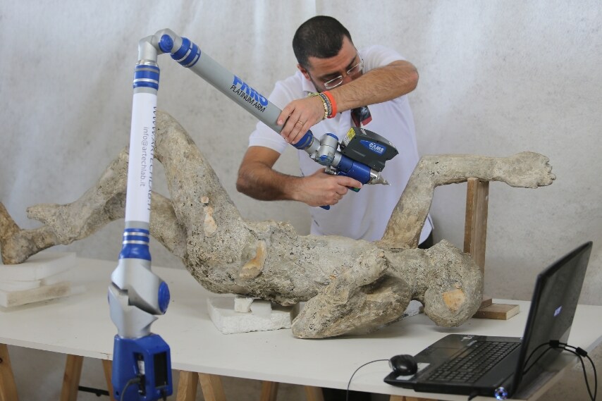 Ecco il lavoro sui calchi dei corpi carbonizzati dall'eruzione del Vesuvio nel laboratorio di Pompei. I calchi, realizati dall'archeologo Giuseppe Fiorelli, sono stati restaurati, sottoposti anche a raggi x, ricostruzione con scanner laser ed esami del Dna. Il tutto rientra nel "Grande progetto Pompei" che mira al restauro e alla messa in sicurezza del sito. Degli 86 calchi ritrovati, 20 saranno in mostra dal 26 maggio nell'Anfiteatro di Pompei per la mostra "Pompei e l'Europa 1748-1943". Le analisi ai raggi x hanno rilevato che all'interno dei calchi è presente ancora l'intera struttura ossea delle vittime confermando che le persone morirono all'istante: ecco che così ritroviamo i pompeiani proprio nella posizione in cui spirarono nel momento in cui la nube di 300° li colpì, tra cui spiccano una mamma ed un bambino abbracciati.
