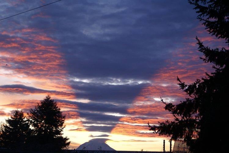 Questa foto mostra i raggi crepuscolari che si estendono dal Monte Rainier. L'immagine, scattata da Sally Budack e pubblicata da Earth Science Picture of the Day, è stato catturata da Tacoma, Washington, il 27 dicembre 2009. Il sole era posizionato proprio dietro il Mount Rainier permettendo che la sua ombra triangolare si proiettasse in questo modo. I raggi crepuscolari, visibili generalmente all'alba o al tramonto, sono osservabili quando degli oggetti picchi montani o nubi creano delle zone d'ombra tra i raggi del sole. I vari residui dispersi nell'atmosfera spargono la luce solare e rendono questi raggi visibili, grazie alla diffrazione, alla riflessione e allo scattering.
