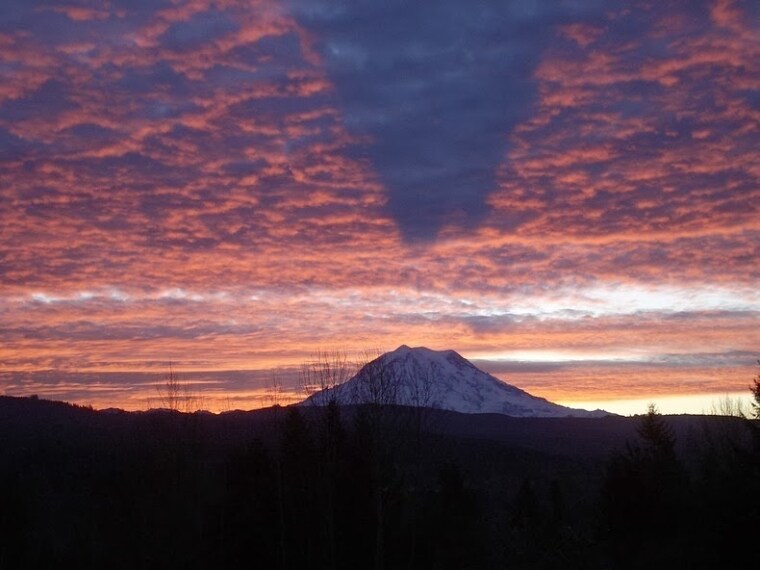 Questa foto mostra i raggi crepuscolari che si estendono dal Monte Rainier. L'immagine, scattata da Sally Budack e pubblicata da Earth Science Picture of the Day, è stato catturata da Tacoma, Washington, il 27 dicembre 2009. Il sole era posizionato proprio dietro il Mount Rainier permettendo che la sua ombra triangolare si proiettasse in questo modo. I raggi crepuscolari, visibili generalmente all'alba o al tramonto, sono osservabili quando degli oggetti picchi montani o nubi creano delle zone d'ombra tra i raggi del sole. I vari residui dispersi nell'atmosfera spargono la luce solare e rendono questi raggi visibili, grazie alla diffrazione, alla riflessione e allo scattering.