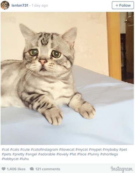 Ha già 15.000 followers su Instagram, ma Luhu è sempre triste. Almeno questo ci dice la sua imperitura espressione. La proprietaria, Maggie Lue, che aggiorna quotidianamente i fan online, posta tutti i giorni foto della gattina che gioca sia con altri animali che con dei giocattoli. Nulla però sembra allietarla. La micia pare costantemente preoccupata, rattristata. La donna, che abita in Cina, ha riferito che la Luhu ha due fratelli, ma "i loro volti, i gusti e le personalità sono completamente diversi" da quelli della più famosa e triste gatta.