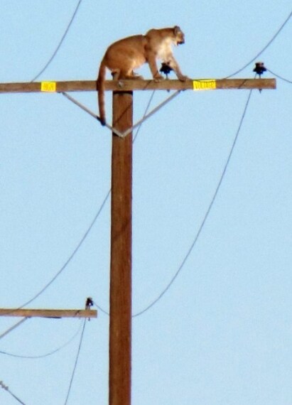 Il puma spaventato si arrampica sul palo dell’alta tensione
