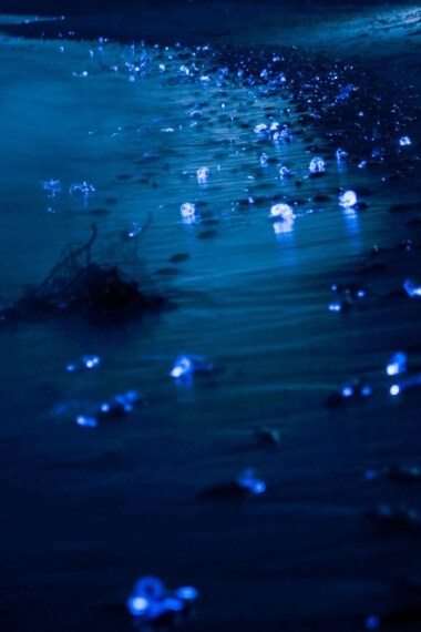 In Giappone tra marzo e giugno si può assistere ad uno spettacolo straordinario. E' merito dei calamari bioluminescenti, o calamari lucciola, che illuminano la baia di Toyama. Questi calamari emettono in modo naturale una forte luce blu. Quasi tutto il loro corpo è coperto da organi luminosi, chiamati fotofori, che sono in grado di produrre luce dando luogo alla bioluminescenza.