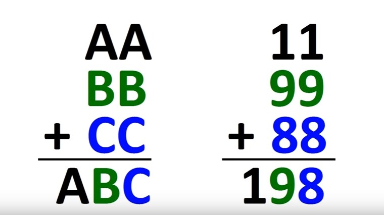 AA = 11 BB = 88 CC = 99 Quindi A vale 1, B vale 8 e C vale 9.