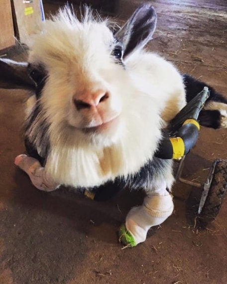 Baine è una capra nigeriana molto speciale. Arrivata in una fattoria nella città di Madison (WI), è stata accolta da volontari e dagli altri animali con molto affetto, nonostante fosse diversa. La piccola è nata infatti con una malformazione congenita che gli ha impedito di usare le zampe posteriori.