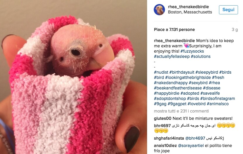 Rhea è "nuda" e intenerisce il web: la storia della pappagallina senza piume