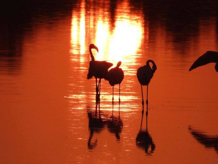 Taranto, lo spettacolo dei fenicotteri rosa al tramonto sulla Salina dei Monaci di Torre Colimena