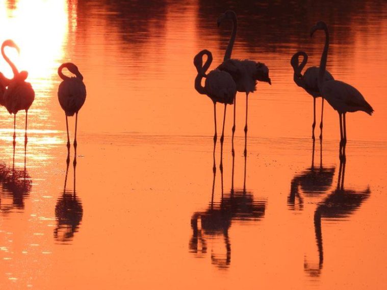 Taranto, lo spettacolo dei fenicotteri rosa al tramonto sulla Salina dei Monaci di Torre Colimena