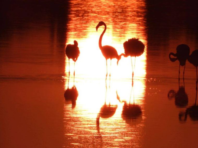 Taranto, lo spettacolo dei fenicotteri rosa al tramonto sulla Salina dei Monaci di Torre Colimena