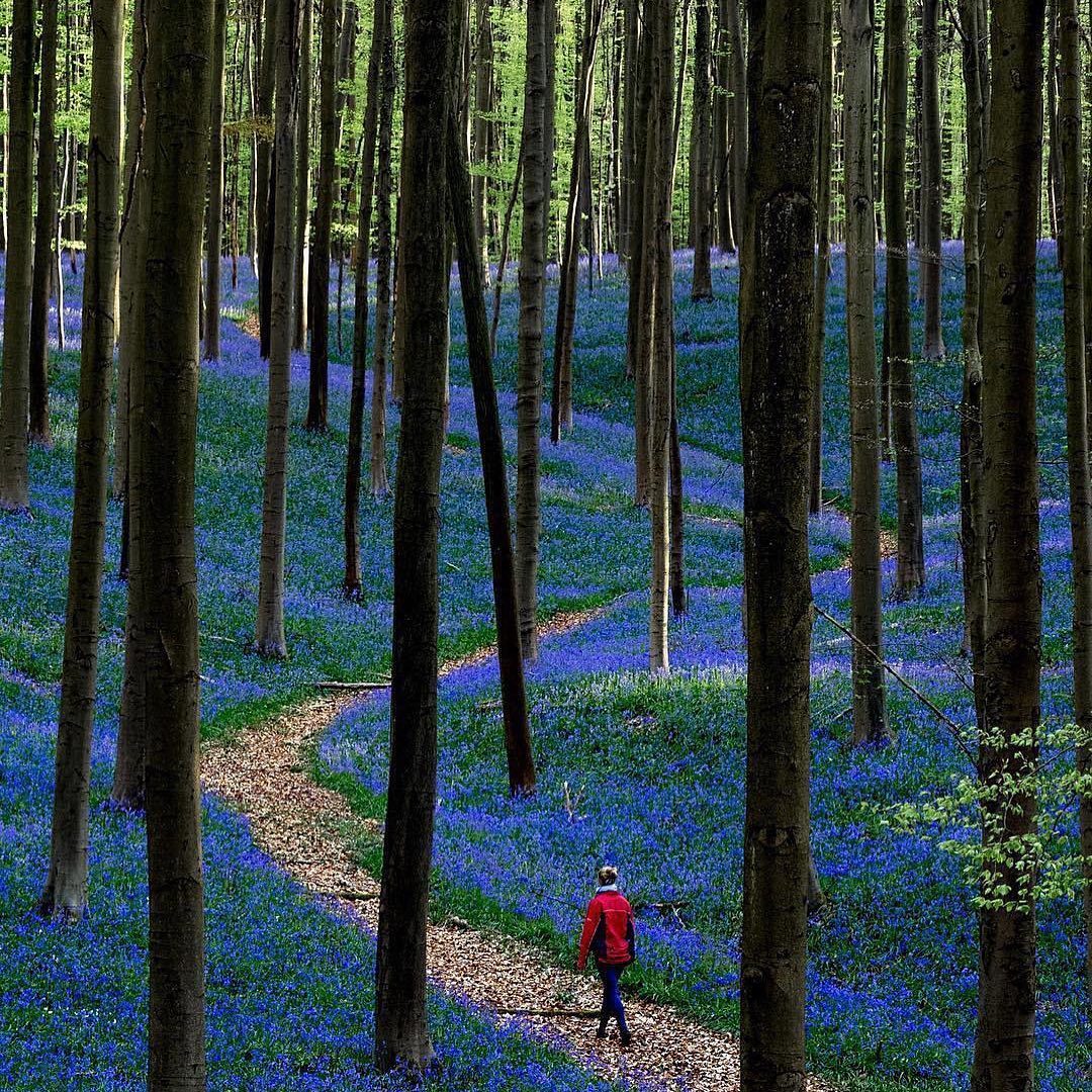 Un meraviglioso scorcio quello che è possibile ammirare se si passeggia, in un determinato periodo dell'anno, nella "foresta blu" di Hallerbos, in Belgio. All'inizio della primavera c'è la fioritura dei giacinti che danno questa particolare colorazione al suolo e tra la fine di marzo e tutto aprile colorano in un modo fiabesco la foresta.