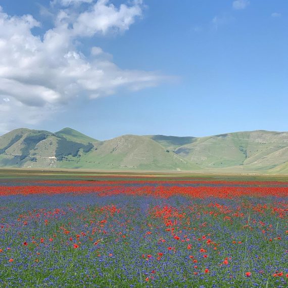 Nel cuore dell'Umbria, come ogni anno, nei campi di Castelluccio di Norcia, si può ammirare uno spettacolo naturale. Durante la fioritura dei campi di lenticchia, numerosi sono i fiori che sbocciano (tra i quali papaveri, senape selvatica, camomilla e leucantemo) che danno colorazioni particolari a ettari di terreno.