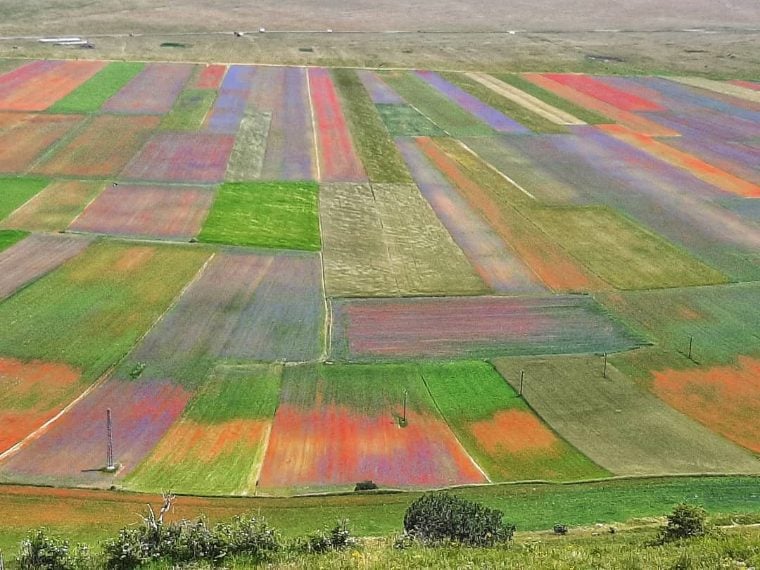 Nel cuore dell'Umbria, come ogni anno, nei campi di Castelluccio di Norcia, si può ammirare uno spettacolo naturale. Durante la fioritura dei campi di lenticchia, numerosi sono i fiori che sbocciano (tra i quali papaveri, senape selvatica, camomilla e leucantemo) che danno colorazioni particolari a ettari di terreno.