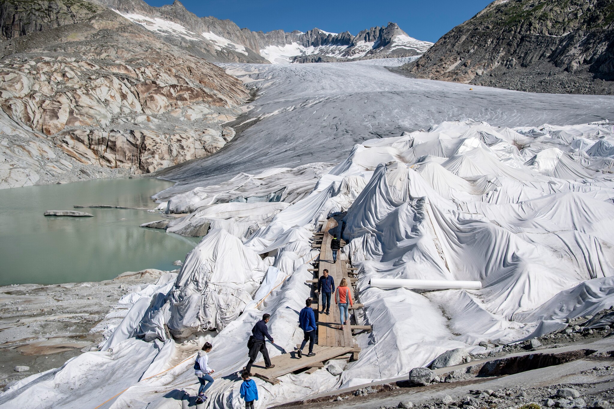 Ghiacciaio del Rodano coperto con dei teli bianchi per evitare lo scioglimento