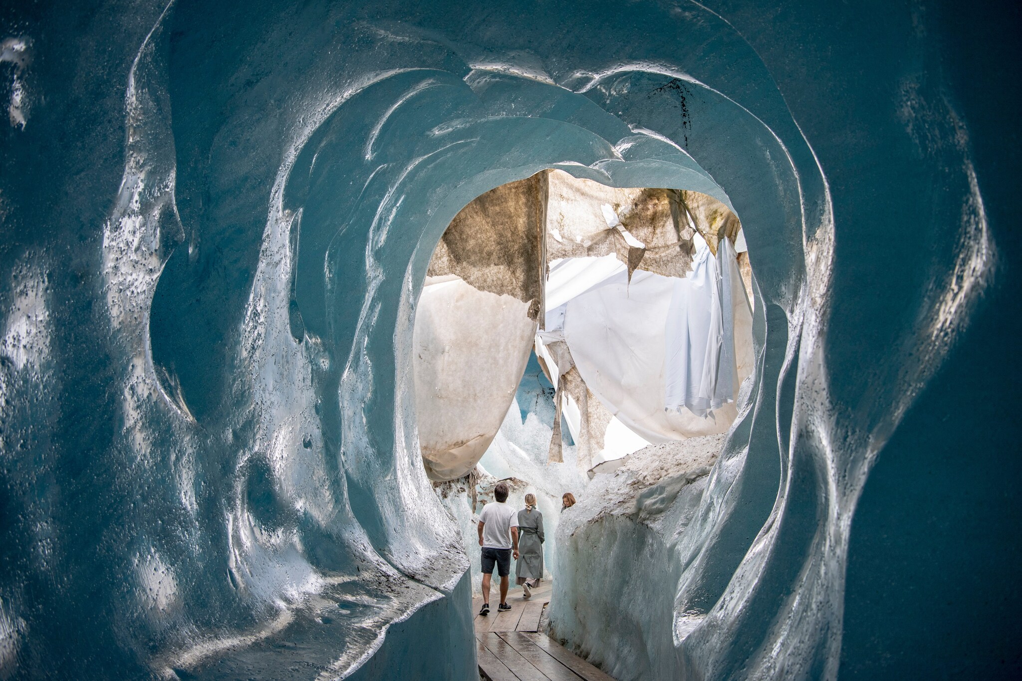 Ghiacciaio del Rodano coperto con dei teli bianchi per evitare lo scioglimento