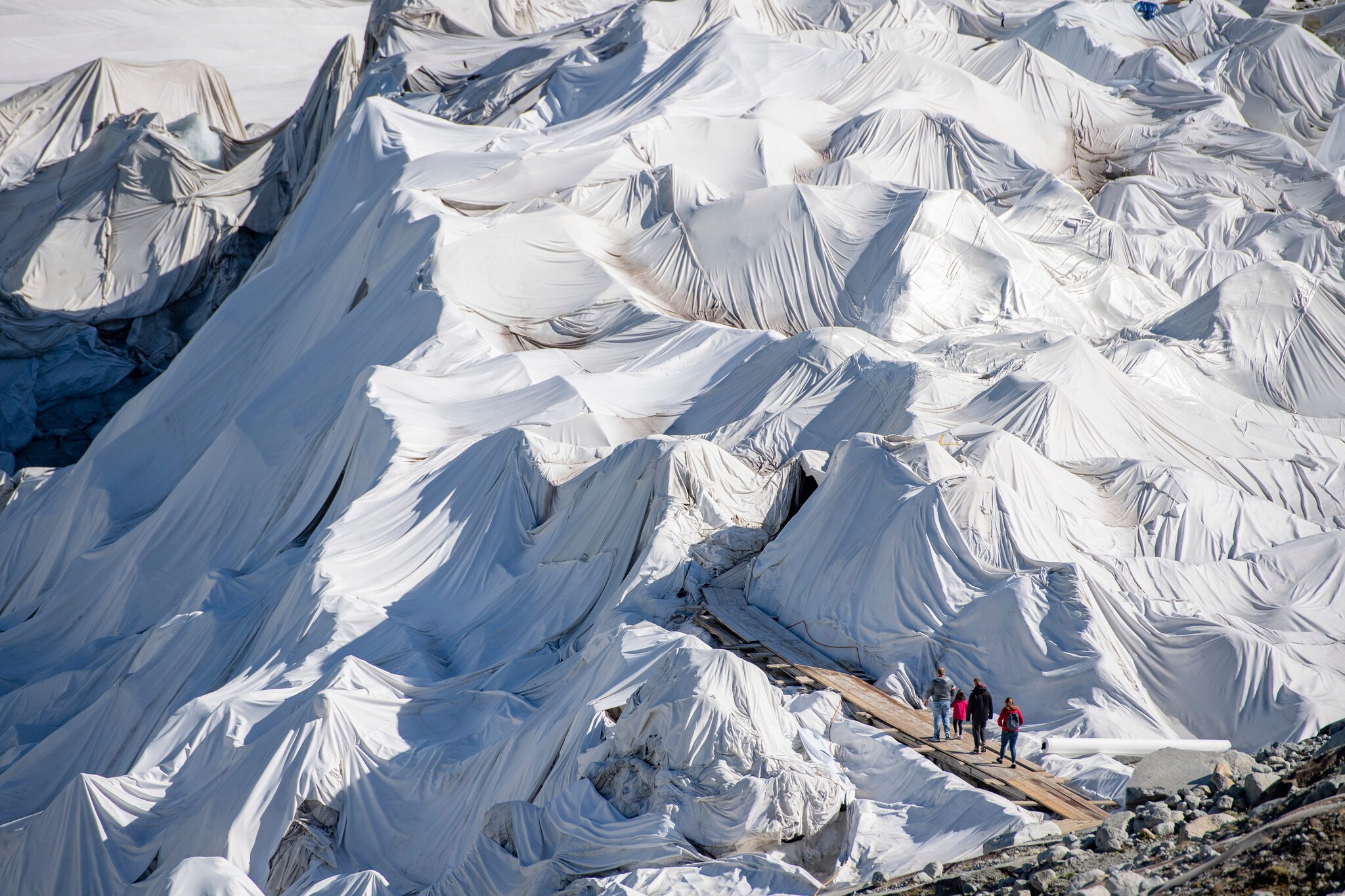 Ghiacciaio del Rodano coperto con dei teli bianchi per evitare lo scioglimento