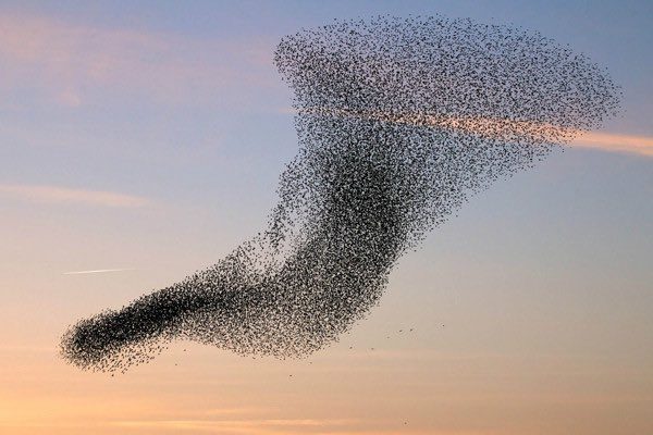 Gli storni si raggruppano a migliaia, formando una bellissima opera d'arte in cielo