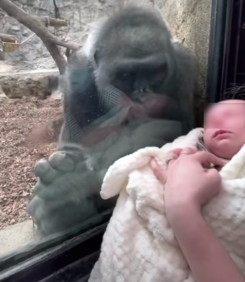 Negli USA da alcune settimane sono stati riaperti anche gli zoo e questa giovane coppia che ha avuto il loro primo figlio circa un mese fa, ha fatto visita al Franklin Park Zoo di Boston. Avvicinandosi al vetro che delimita il luogo dove vivono alcuni esemplari di gorilla, la donna tenendo in braccio il suo piccolo ha attirato l'attenzione di un esemplare di femmina adulta. Dopo alcuni minuti in cui il gorilla sembrava curioso e intenerito dal cucciolo umano. Poi ha permesso al suo cucciolo di avvicinarsi, quasi a volerlo mostrare all'altra persona, divenuta mamma come lei solo pochi giorni prima.