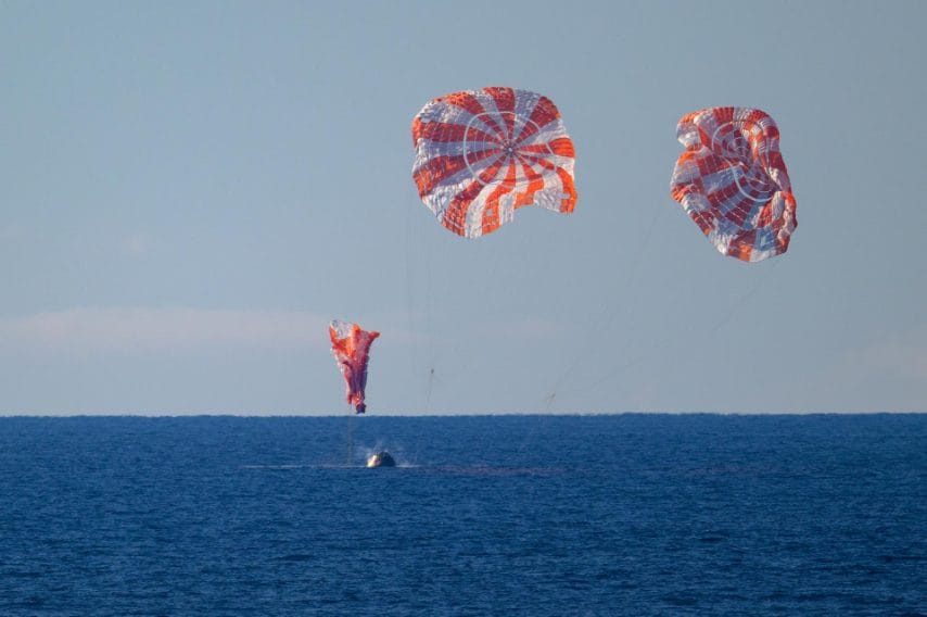 Le immagini del rientro della missione Artemis II della NASA: dalla discesa della capsula Orion con i paracadute all’ammaraggio nell’Oceano Pacifico, fino al recupero e ai primi momenti degli astronauti dopo il ritorno dal viaggio intorno alla Luna. Credit: NASA
