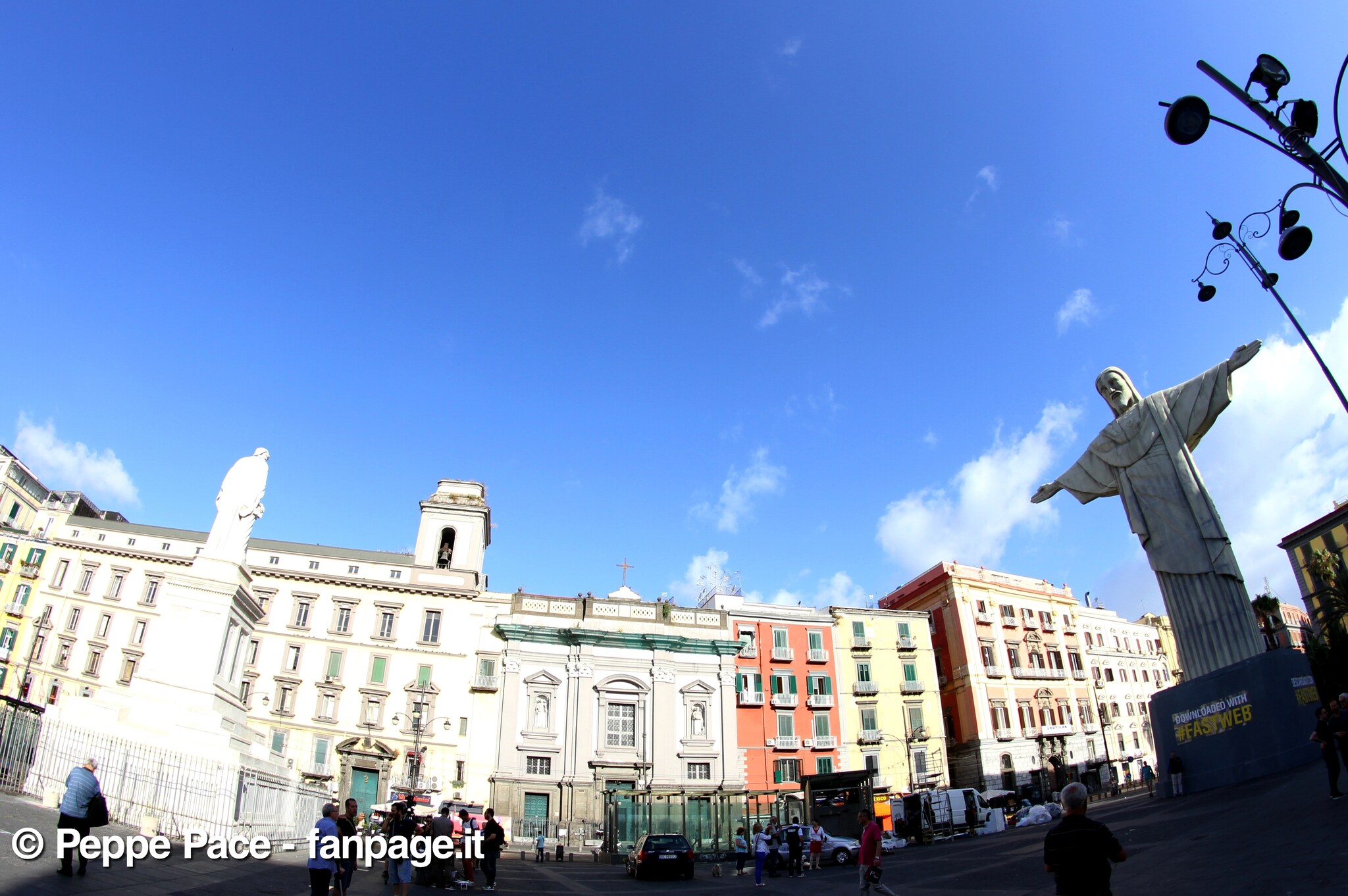 Napoli, nella centralissma Piazza Dante sbuca un Cristo Redentore di 20 m