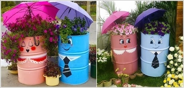 4. Fioriere romantiche con barili usati