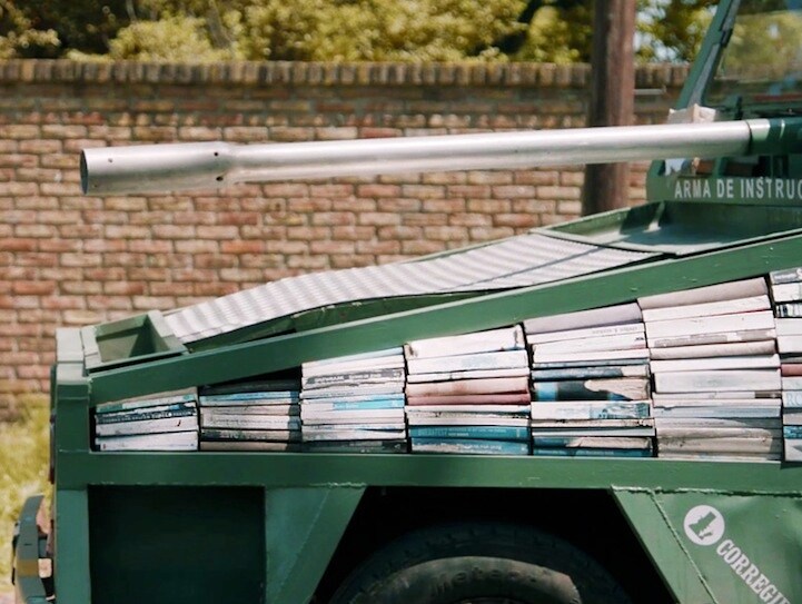L'artista Raul Lemesoff ha inventato una nuova "arma di istruzione di massa" trasformando un vecchio carro armato in una libreria mobile per promuovere la lettura in Argentina.