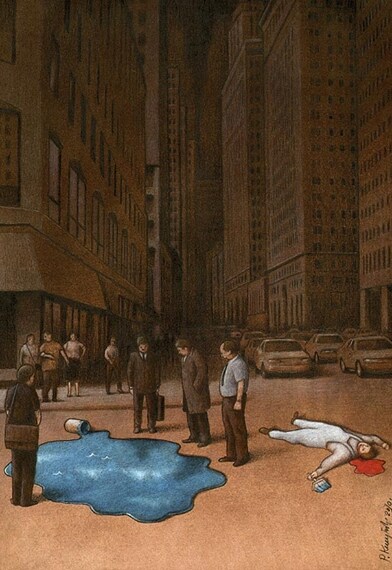Pawel Kuczynski racconta la realtà attraverso le sue ciniche illustrazioni delle contraddizioni del mondo, pungente.