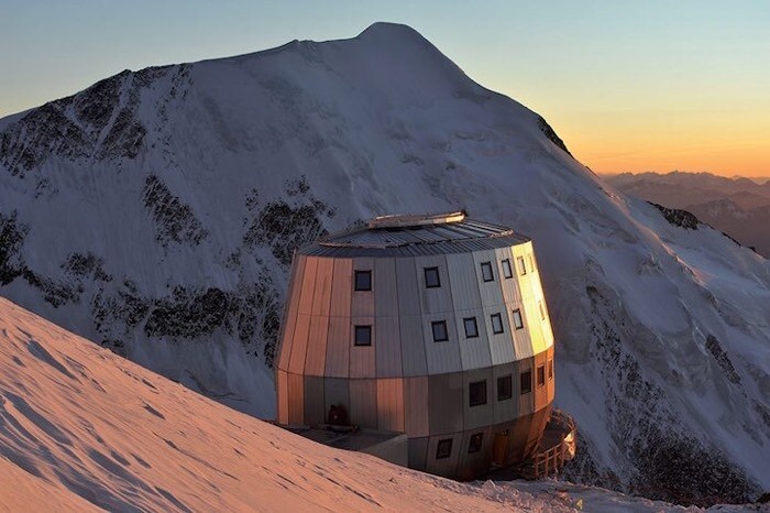 Sembra il perfetto covo di montagna per James Bond o la navicella di un alieno disperso sulle montagne questo avveniristico rifugio sul Monte Bianco, il più alto della Francia.
