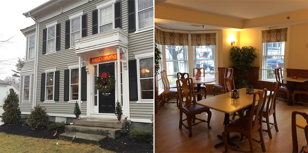 È stato costruito a Freeport, il McDonald è sorto all'interno di una villetta lungo la strada. La città ha rigidi codici per quanto riguarda la comparsa di nuove attività commerciali. Questo si integra alla perfezione nel contesto!