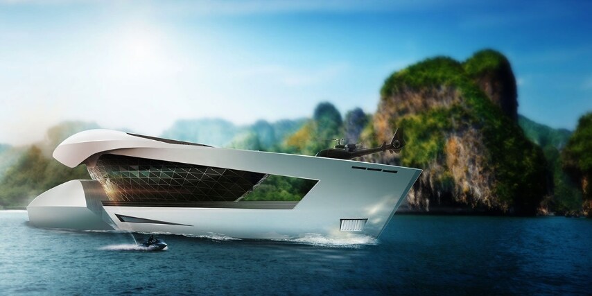 Promette di far sognare il miliardario che ha già tutto il nuovo super yacht CF8 dotato di piscina che si trasforma in pista da ballo, cascata personale, showroom con otto auto di lusso e molto altro ancora.