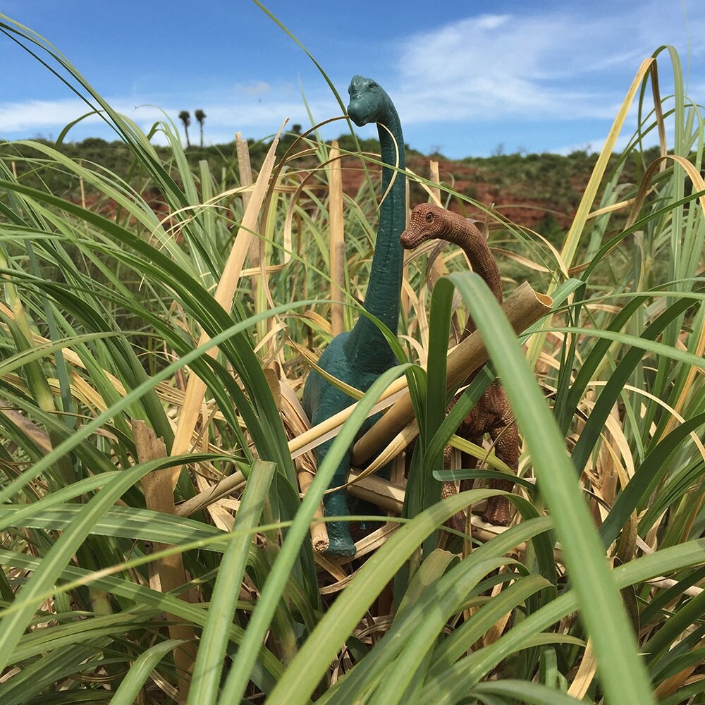 Le foto di viaggio diventano preistoriche con i dinosauri giocattoli