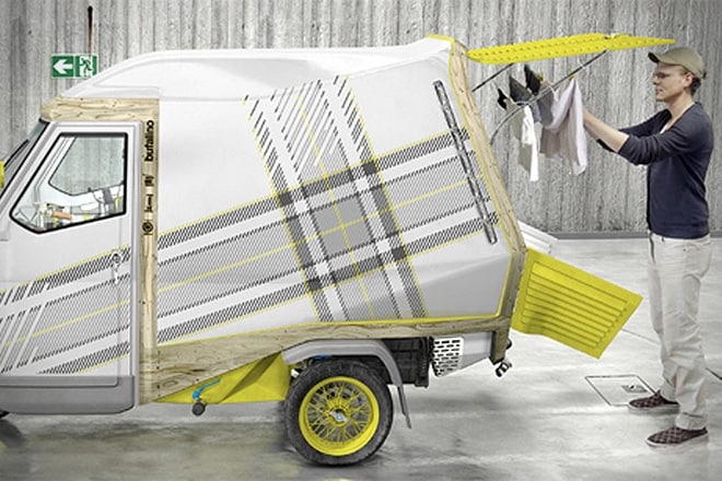 Se siete viaggiatori solitari ecco il mezzo che fa al caso vostro: un classico Ape car della Piaggio trasformato in una casa mobile per spostarsi ovunque con il massimo delle comodità.