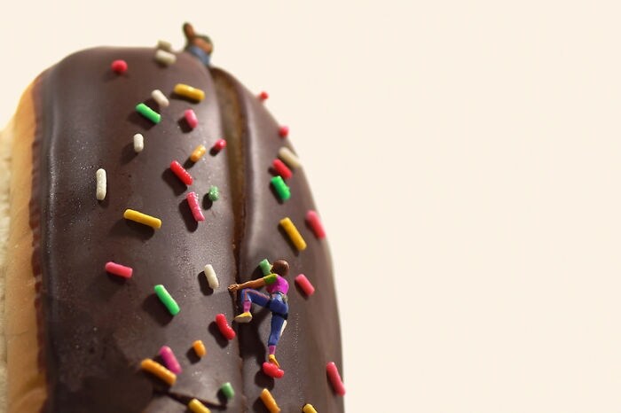 Oggetti da ufficio, prodotti alimentari e altri elementi trovati vengono utilizzati da Tatsuya Tanaka come set perfetti delle sue scene di vita reale in miniatura.