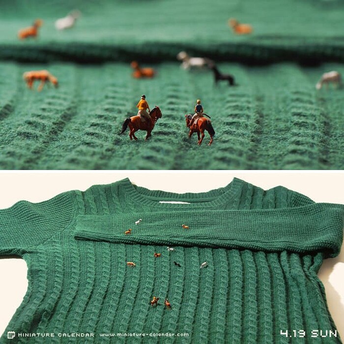 Oggetti da ufficio, prodotti alimentari e altri elementi trovati vengono utilizzati da Tatsuya Tanaka come set perfetti delle sue scene di vita reale in miniatura.